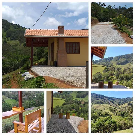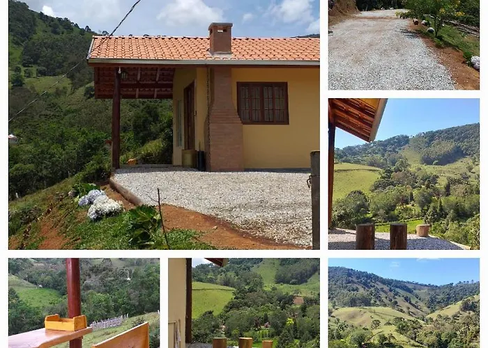 Featuring walking tours to make your visit more entertaining, Chale Som Do Riacho E Chale Riacho Sereno, Com Hidromassagem E Lareira A 20 Minutos De Goncalves-Mg villa is 4.6 km from the Pedra de Sao Domingos. The chalet awaits guests on a patio with a dining table.